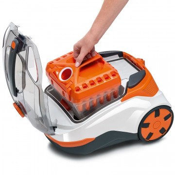 Avec sa puissance de 1700 watts maximum et son aspiration cyclonique, aspirez et emprisonnez saletés, poussières, poils de votre animal de compagnie et particules allergènes. Le THOMAS CYCLOON HYBRID PET & FRIENDS est issu de notre gamme innovante d’aspirateurs anti allergies et il est d’un entretien simple et aisé.